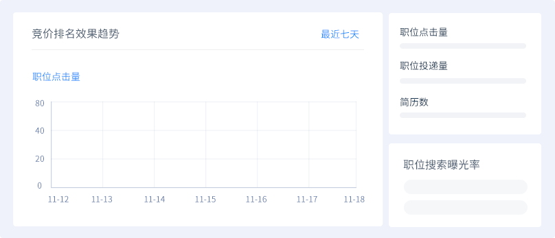 在搜索結果頁中,只要你對“關鍵詞”進行競價,將會出現在列表里最頂置的地方,讓求職者第一時間發現您的職位,讓您的職位具備超高的曝光率及受關注,吸引應聘,強力提升招聘效果。
