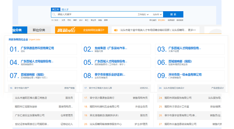 如果您所推廣的職位排名在前21名內,將會出現在首頁急聘職位區域,坐擁巨大的流量和點擊率,大幅提升您的招聘效果和企業知名度。